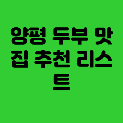 양평 두부 맛집 추천 리스트